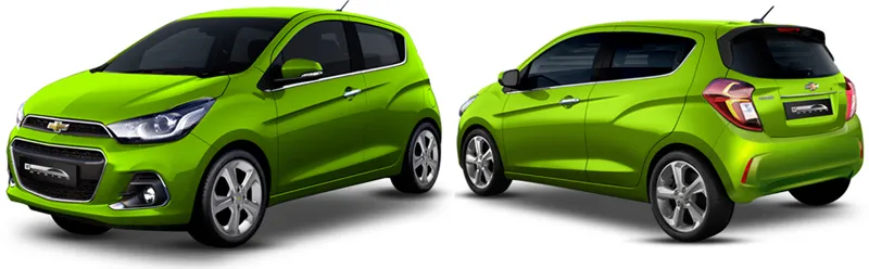 익스테리어는 2015년을 기점으로 쉐보레가 말리부, 크루즈 등 쉐보레 브랜브 산하 차종에 공통적으로 적용하고 있는 새로운 패밀리룩을 경차인 스파크에도 최대한 적용했습니다. 때문에 기존의 M300의 디자인과는 차이가 있는데요. 전작인 M300과 가장 큰 차이점은 바로 전고였죠. 전고를 45mm 낮춘 1,475mm로 내려 M300에 비해 보다 세단에 가까운 형태를 띄게 됩니다. 경차의 디자인은 공기역학적으로 세단을 비롯한 다른 차량의 형태보다 공기역학적으로 불리하지만, 그것을 조금 더 개량했으며, 전고를 낮추면서 경차하면 다른 해치백형 차량보다 높고 뚱뚱하다는 이미지를 어느 정도 벗어 다른 중소형 해치백 차량을 조금 더 줄인것과 같은 역동적인 형태를 보여주었습니다.